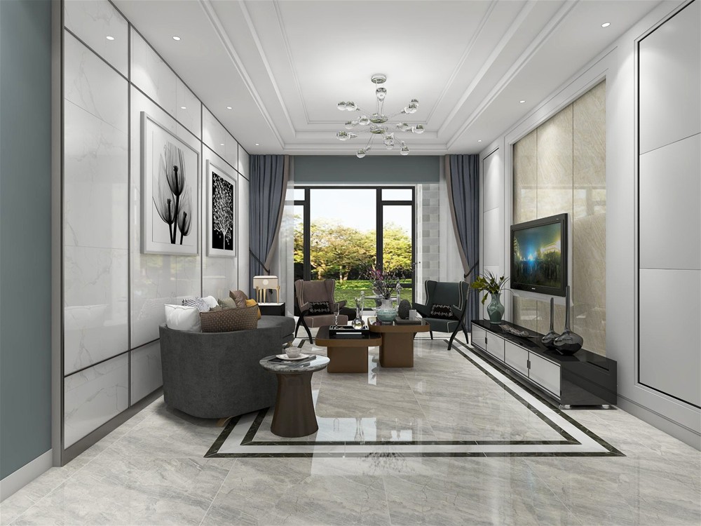 現代簡約客廳通體大理石地面KTA8301+電視背景KTA8088+沙發背景墻KTA9821