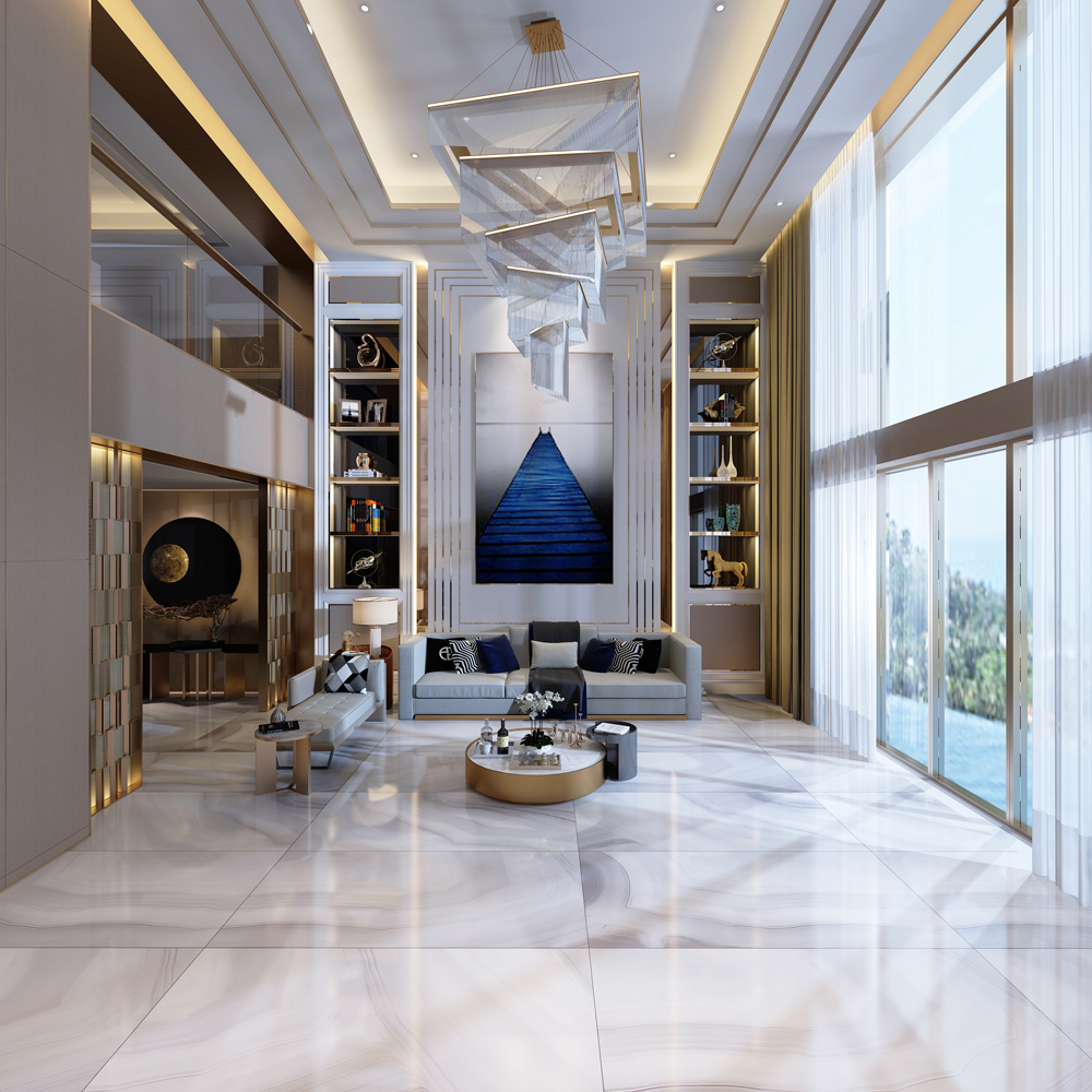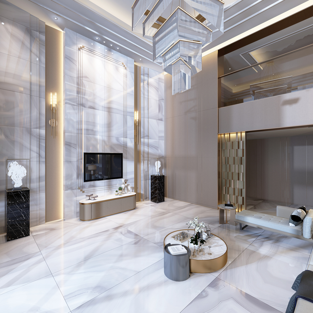 新中式的別墅客廳,磚面飄逸的閃電紋,在大面積鋪貼時(shí)呈現(xiàn)出更立體、更震撼的視覺效果。和天然石材如出一轍,實(shí)現(xiàn)原生態(tài)的無邊界視覺效果,營造大氣、優(yōu)雅的空間。
