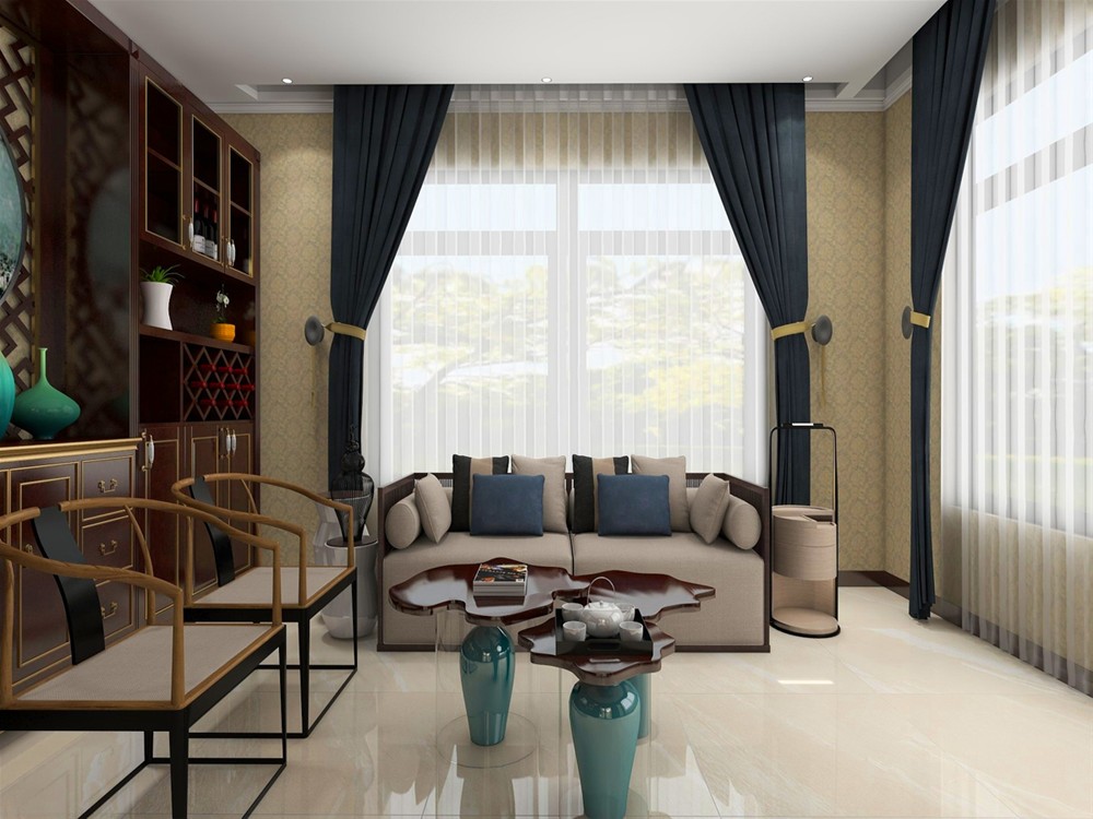 身處客廳一切由“心”出發,通過頂、地、墻以及家具飾品各個中式元素巧妙結合,使整體空間呈現出”素“、”雅“、”明“、”靜“四界氛圍。此空間主構架以木色為主,構架出“雅”。