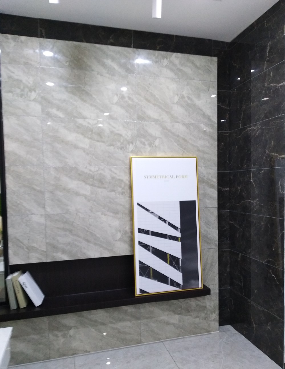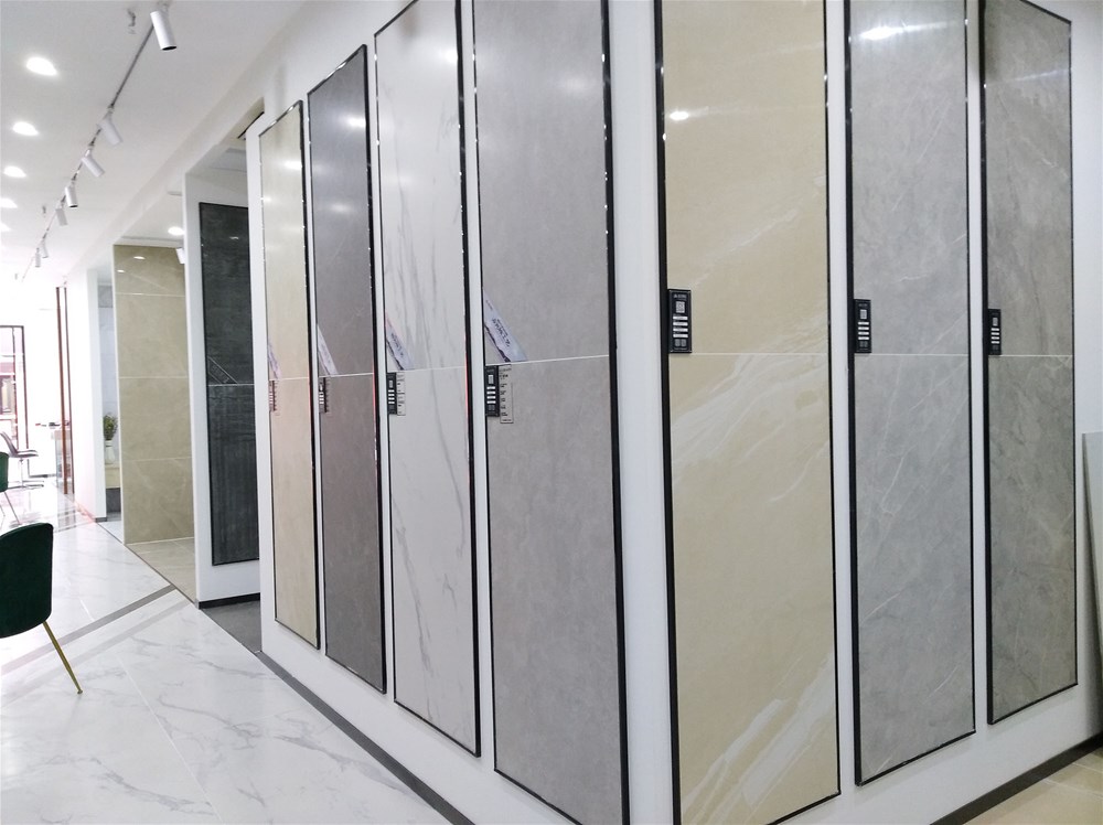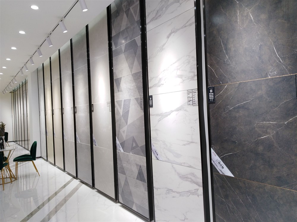 這邊走,這是我們的選材區(qū),規(guī)格、款式、風格一應俱全,通過射燈照射下的磚面紋理是不是清晰多了?如果您現(xiàn)在還不知道自己要選什么產(chǎn)品,看完我們的模擬間你或許就能找到方向了。