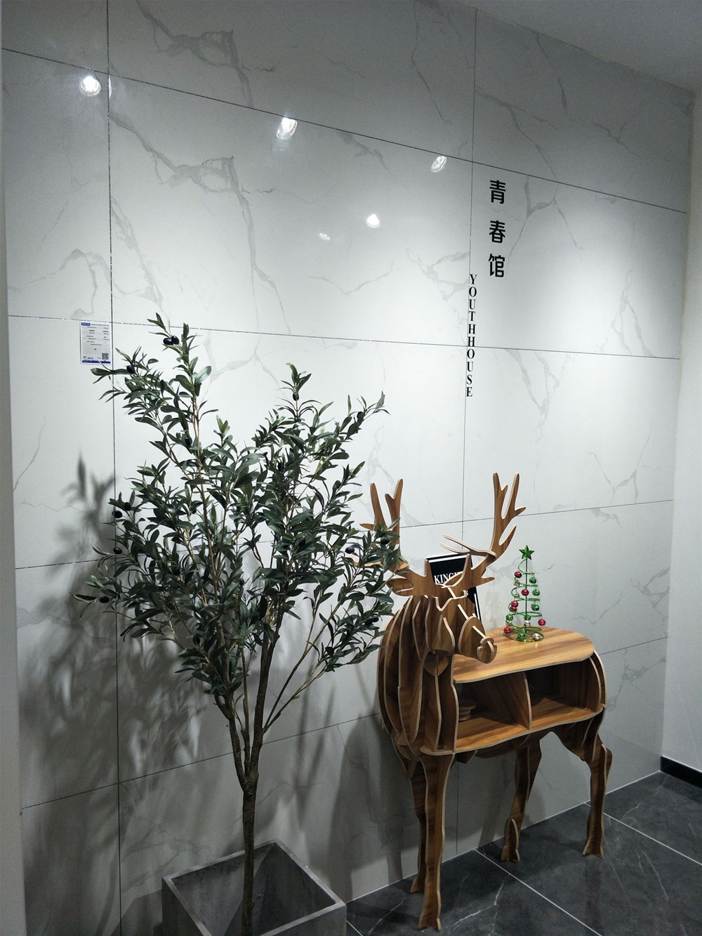 我們繼續(xù)往下看,這是由九面通體大理石KA9M61205雅士白鋪貼的商場的一角,也適用于陽臺(tái)、花園等空間,600*1200規(guī)格直鋪是不是大氣又不失優(yōu)雅,再者是大紋理的點(diǎn)綴,小空間切割鋪貼同樣適用哦。