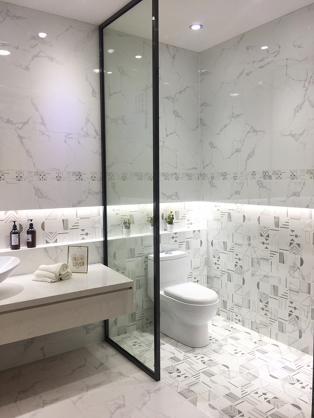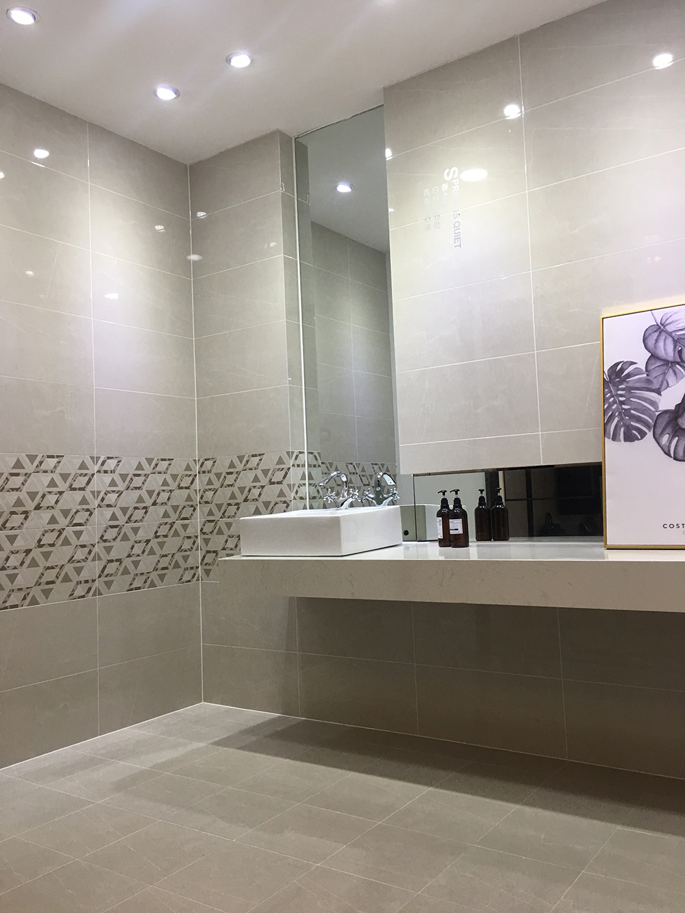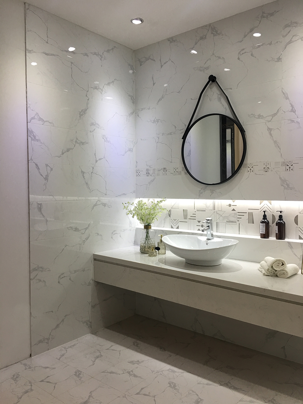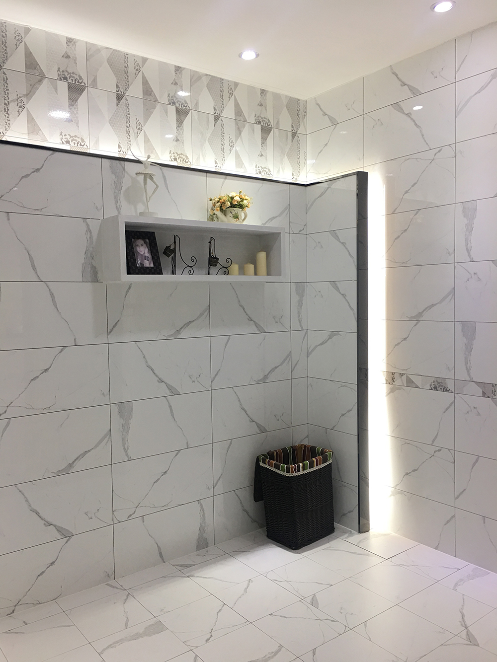 白色的瓷片鑲嵌著大氣的銀灰色紋理