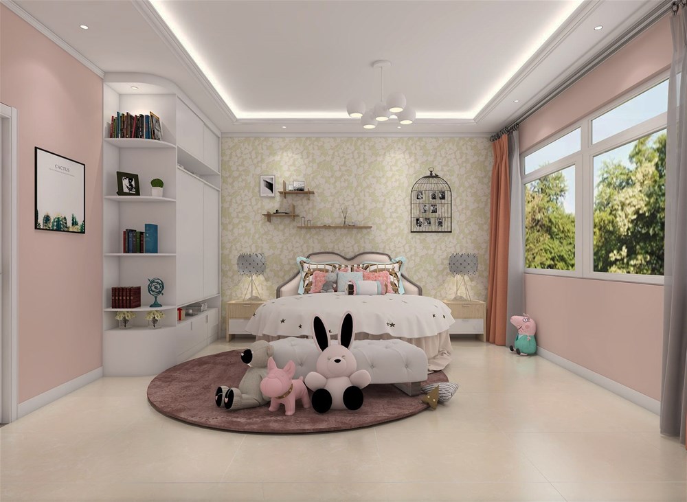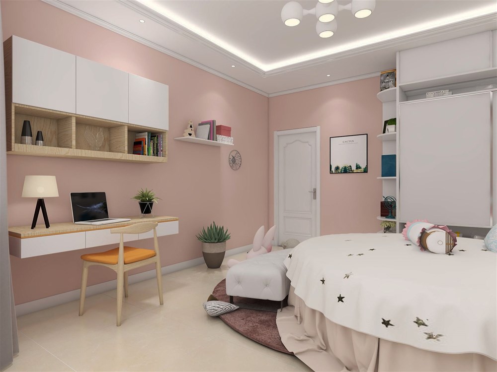 粉色的壁紙營(yíng)造出粉嫩可愛的氛圍