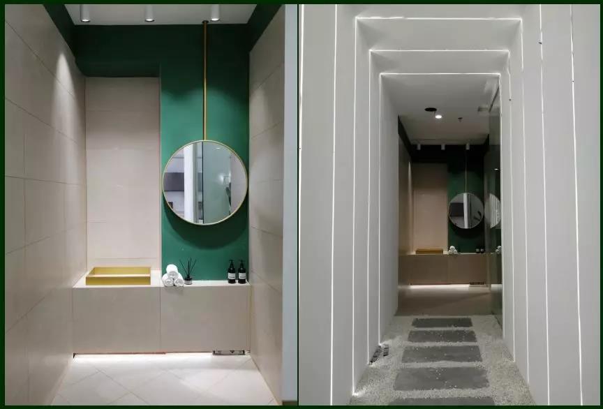 這時光走廊,一頭鏈接著主調為墨綠色的小空間,象征著每個人都曾經有過的青春