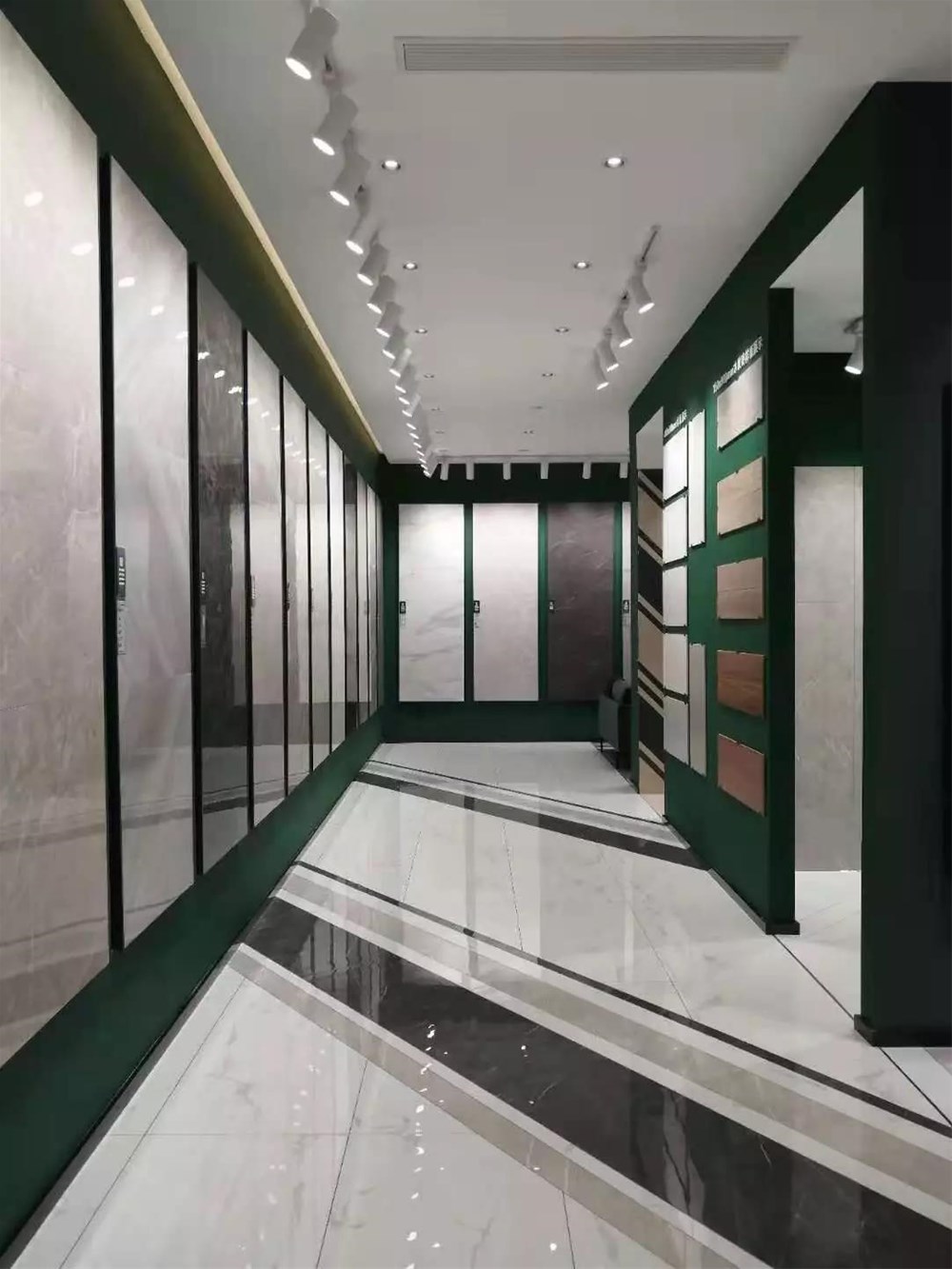 15°緞光釉的灰色調自帶迷人的高貴氛圍,結合白色的卡拉拉白,打造出高端商場的購物氣氛,就連貨架上的貨物都顯得那么的珍貴。