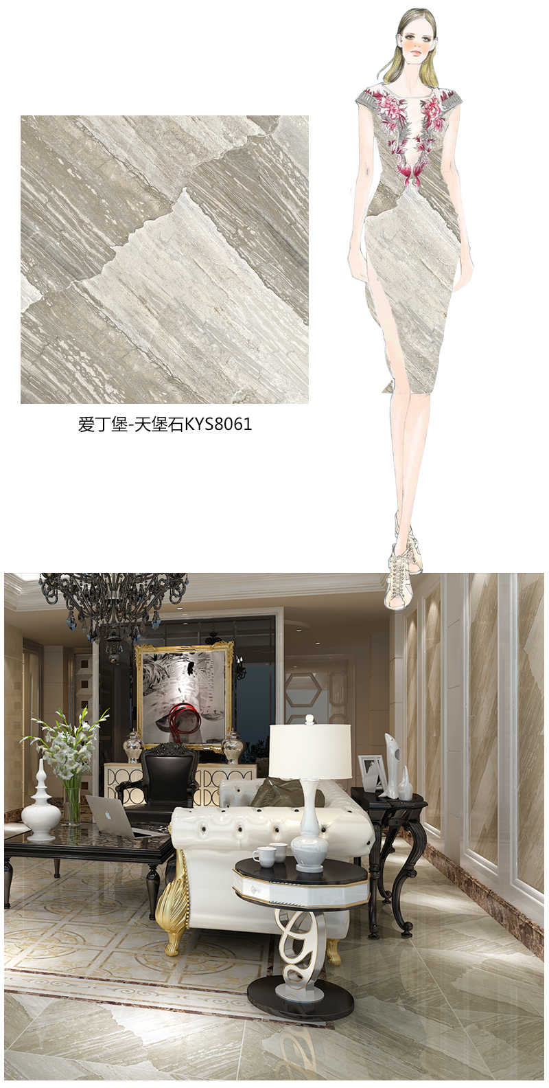 金艾陶愛(ài)丁堡系列產(chǎn)品設(shè)計(jì)靈感,來(lái)源于火山峰頂之城——蘇格蘭愛(ài)丁堡的石裝風(fēng)格,既有火山玉石的熔顏,又有火山原巖峭壁的容貌。產(chǎn)品具有天然大理石材和玉質(zhì)石材的質(zhì)感,大氣,雄渾,紋路流暢,玉質(zhì)純潔而通透,經(jīng)典而高雅。