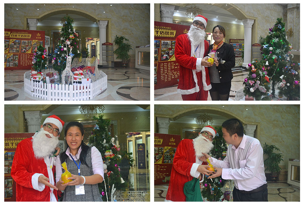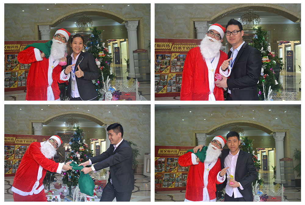 金艾陶瓷磚同事接過圣誕禮物并合影