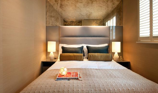 使用鏡子是擴(kuò)大視覺(jué)空間的絕招。特別是針對(duì)小型的臥室,一個(gè)帶有鏡子的墻面,至少可以讓空間擴(kuò)大兩倍。鏡子不僅對(duì)空間起到微妙的作用,同時(shí)它也是一件優(yōu)雅的裝飾品。