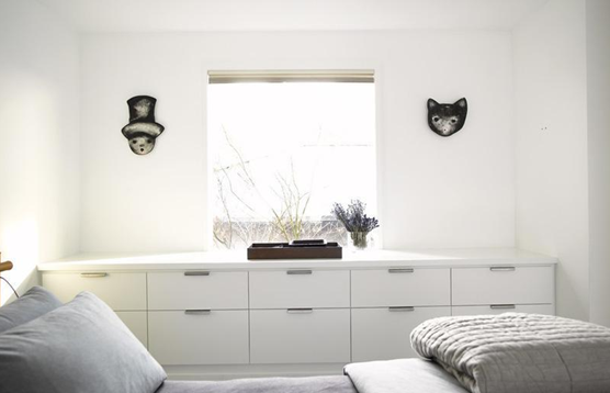 白色可以說(shuō)是永不落伍的裝修色彩,不僅可以打造知性、淡雅的房間氛圍,全白的家居設(shè)計(jì)還能使得空間的安全感大大增加。窗戶與白色的家具相連接,把人的視線自然而然地就引向窗外,擴(kuò)大了視野。
