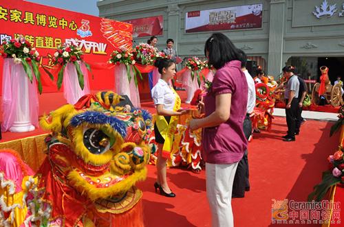 醒獅助陣,金艾陶惠州旗艦店開業大吉。
