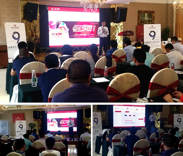 金秋時節,在國慶節來臨之際,重慶拋出重磅好消息,金艾陶3D系統•設計不求人暨9面通體大理石發布會—重慶站于9月27日在重慶錦達園禮宴大酒店舉行,金艾陶瓷磚品牌營銷總經理羅勝、網銷部運營總監劉小良、金艾陶南銷區培訓老師廖國根、重慶金艾陶瓷磚運營總經理曾令波、金艾陶3D系統負責人陳嘉輝老師以及西南地區的金艾陶瓷磚代理商和意向客戶共計40多位嘉賓參加本次活動。