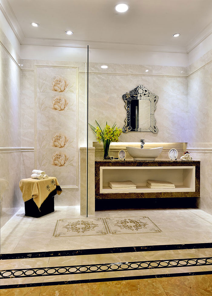 無專業(yè)設(shè)計(jì)指導(dǎo)的情況下,建議選擇與墻磚配套的地磚,避免頭重腳輕的感覺。