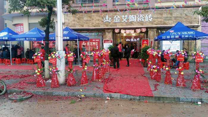 5月18日,震天的鞭炮聲拉開了陶瓷一線品牌金艾陶瓷磚浙江衢州店開業盛典的序幕。