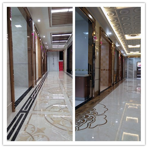 物料的裝飾會給瓷磚店添加幾分活力,門口掛著的牌匾又為品牌實力增加了分量。