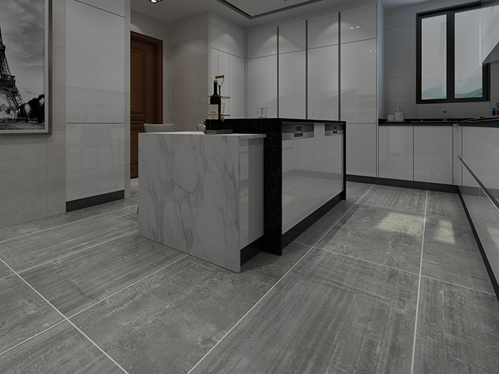 工字鋪貼,告別一成不變,寥寥幾件家私,搭配素色現代仿古磚,極致簡約。