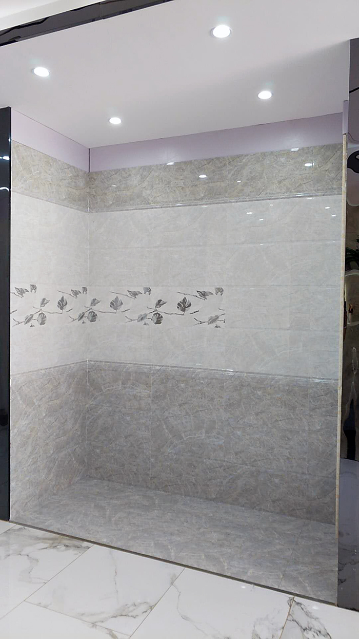 瓷片空間的鋪貼效果往往和花片的搭配有很大關(guān)系,此空間的葉子花片,讓整個空間多了幾分色彩,不顯單調(diào)。