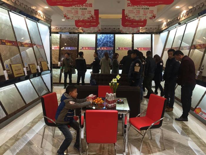 在金艾陶瓷磚鹽城店開業期,為回饋鹽城市新老顧客的熱情支持,店面特舉辦了“買磚可以不花錢”大型開業促銷活動。開業期間,一元小地磚、1200元現金大紅包、買磚返現、現場抽獎等活動吸引了眾多顧客爭咨詢參與,現場氣氛火爆。開業期間,消費滿6000元以上者,還可免費享受上門測量面積、設計鋪貼方案、送貨、全程施工指導、美縫、補貨、退換貨(瓷磚未泡水未損壞)等7星級服務。