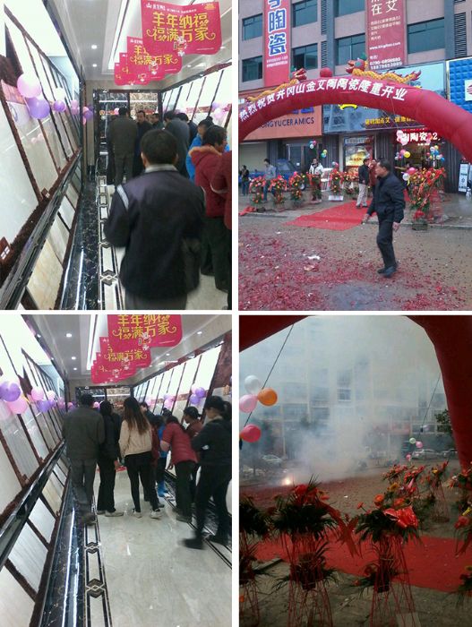 金艾陶瓷磚井岡山專賣店開業(yè)當(dāng)天,按照當(dāng)?shù)亓?xí)俗,中午設(shè)宴接待前來的政商朋友、設(shè)計(jì)師、新老顧客、裝修隊(duì)等200多人。