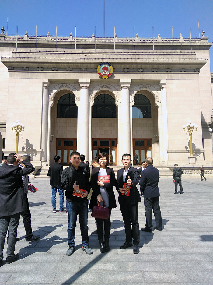 金艾陶瓷磚品牌北京代理商與網絡營銷部經理王宏城在會場前合影留念