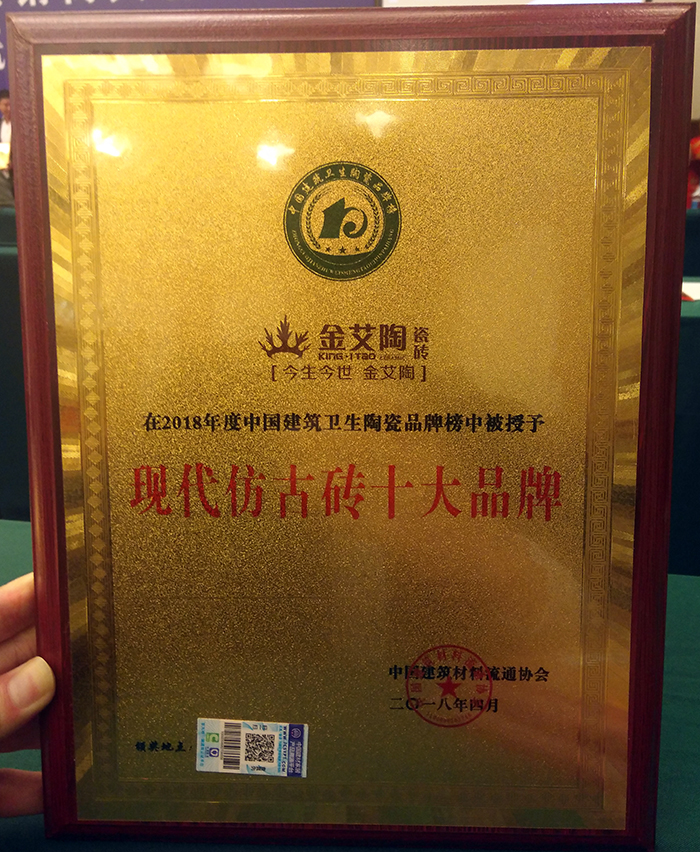 “現代仿古磚十大品牌”獎牌及證書