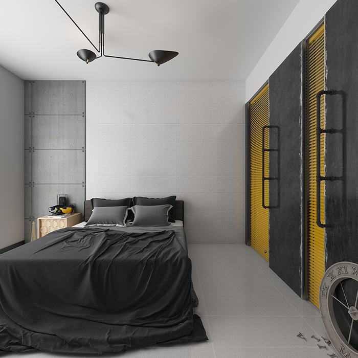 不是簡單的空洞的灰色,而是帶有些微思考紋理的灰磚,給人營造了來了思緒的涌動與創(chuàng)造。配合不落俗套的家具,把酷氣和帥氣全面呈現(xiàn),給人耳目一新的感覺。