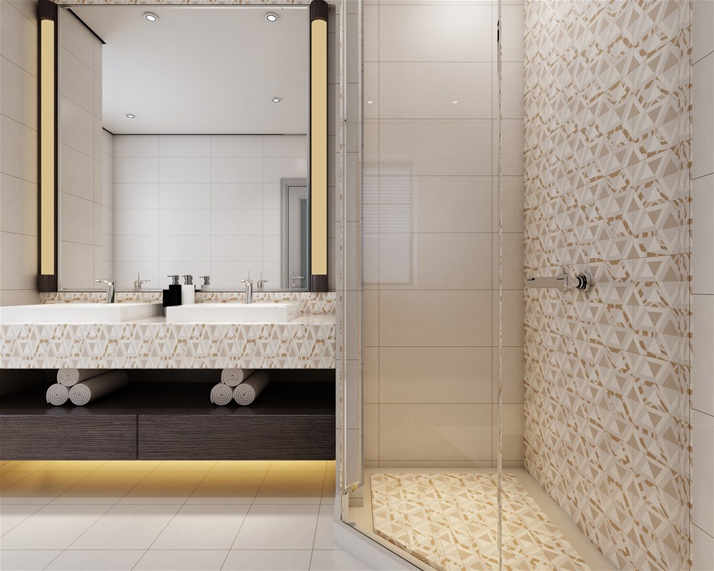 2、印花工藝:目前的瓷片生產(chǎn)的印花方式,通常采用絲網(wǎng)印刷、滾筒印刷、數(shù)碼噴墨叁種。數(shù)碼噴墨比滾筒印刷,花色與紋路更加自然、立體、靈性。滾筒印刷比絲網(wǎng)印刷,花色更加自然、逼真。數(shù)碼噴墨屬于目前較為先進的印花工藝技術(shù),其技術(shù)含量高,生產(chǎn)成本高,目前只有少數(shù)的廠家使用這種技術(shù),金艾陶公司的內(nèi)墻瓷磚基本上都是數(shù)碼噴墨的印花方式生產(chǎn)。