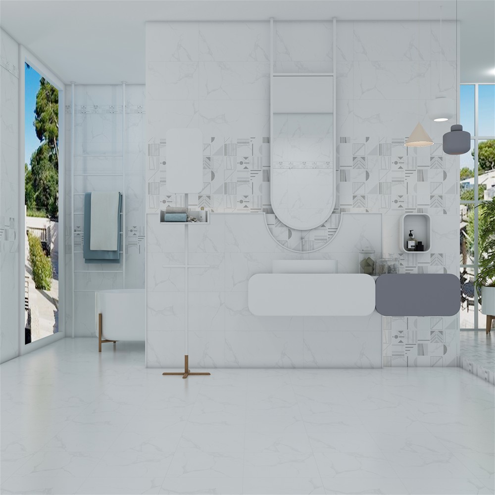 溫潤如雪的“肌膚”表層,細膩雅致,透射出不言而喻的質(zhì)感,如漢白玉般的潔白無瑕,再鋪之以叛逆而不頑劣的灰色紋理,盡善盡美地演繹出了爵士白清風(fēng)脫俗與桀驁不馴的特質(zhì),使其拼接鋪貼的空間優(yōu)雅、脫俗、氣質(zhì)、意境無窮。